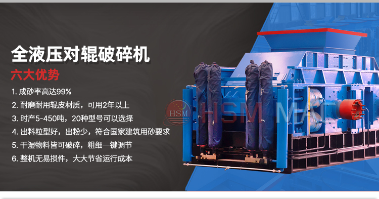 河南華盛銘鵝卵石液壓對輥制砂機(jī)具有以下幾個顯著的優(yōu)勢: